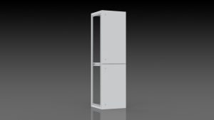 Schrank CX, Glastür, Doppelflügeltür mit Jalousien
